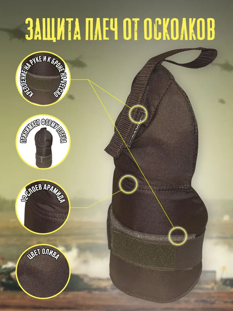 - Арамид, именуемый в народе Кевлар, вшитый в данную защиту плеч, имеет толщину 12 листов 220 г/м, что соответствует защите первого класса БР-1.